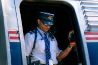 I had a good time. This was a photo I took at the train station. I used the train door to frame the Amtrak conductor.